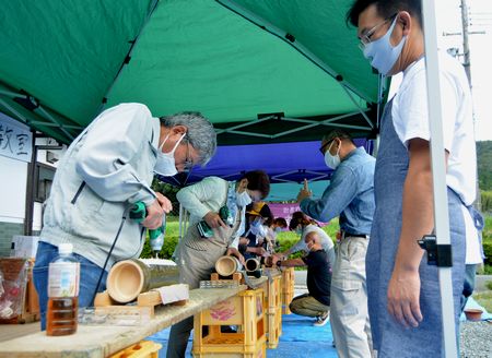 体験会は27日に地区公会堂で開催。密を避け、朝から夕方まで4班に分け、竹灯籠を各自1本ずつ作った。
