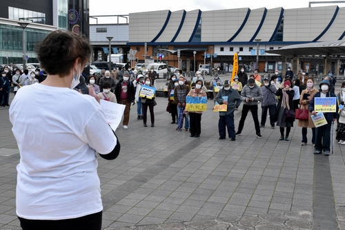 ロシア侵攻に抗議の集会 福知山駅前でウクライナ出身者らが訴え