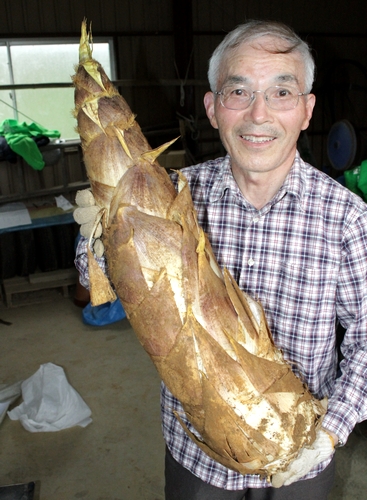 「掘るのに疲れました」と笑顔 大きなタケノコ75センチ、7.8キロ