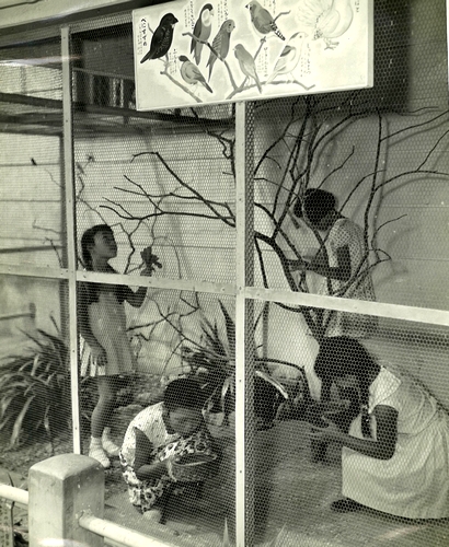 【写真】鳥の世話をする子どもたち(昭和時代、昭和小提供)