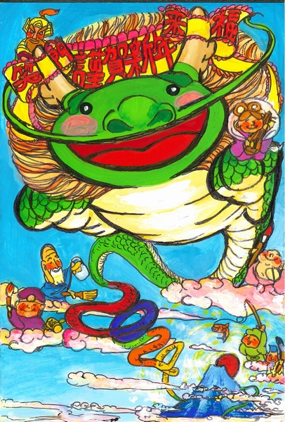 ・干支絵手紙コンクールのグランプリ、藤原昌代さん(神戸市)の作品