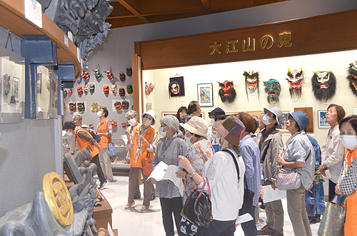 一行は元伊勢内宮皇大神社、日本の鬼の交流博物館などを訪れた。同神社では大江地域観光案内倶楽部の赤松武司会長が、「元伊勢」と呼ばれるようになった経緯を説明。同博物館では大橋一夫市長が歓迎のあいさつをしたあと、村上誠館長がウルトラマンのデザイナーの故・成田亨さんの作品で鬼のモニュメントが建つ同博物館近くの場所は、「酒呑童子など鬼の屋敷があったところと言われています」などと鬼伝説にまつわる話をした。