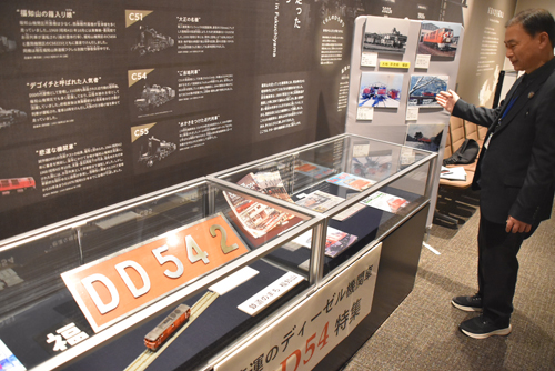 福知山城公園内の福知山鉄道館フクレル(森田成章館長)で、旧国鉄時代に京都府福知山市内の福知山機関区に配備され、鉄道ファンから「悲運の機関車」として語り継がれるディーゼル機関車DD54形に関する特設展が開かれている。4月18日まで。