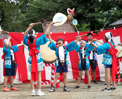 踊りや太鼓の先導役を務めた小学3年生の男子児童2人は「緊張もしたけど練習以上にうまくできました。来年は太鼓役に挑戦したい」と話していた。