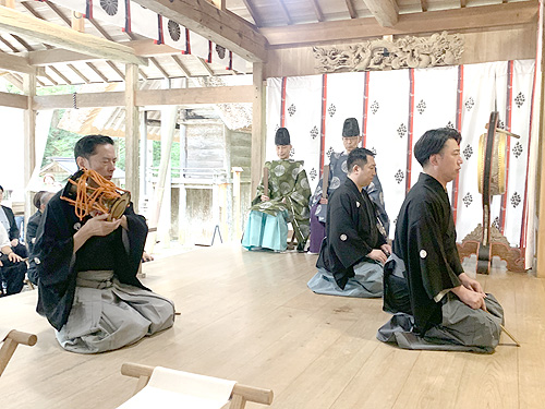 稲穂を神前に 能楽師3人が「神歌」奉納 元伊勢内宮神社で