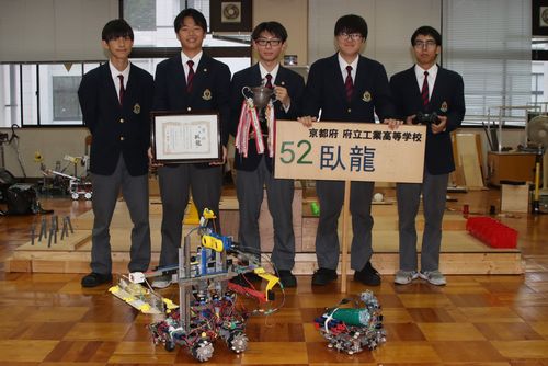 京都府福知山市石原、府立工業高校メカトロ部の生徒5人チーム「臥龍」が、25、26両日に福島県郡山市で開かれる「第33回全国高校ロボット競技大会」に出場する。1枠しかない出場権をかけた府大会で優勝し、同校として5年連続で全国進出を決めた。