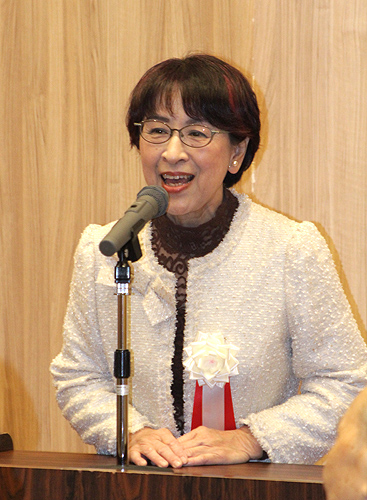 集いには、世話になった関係者や長年勤めてきた従業員ら約55人が参加。村上社長は昔の写真を紹介し、営業で走り回った日々を振り返り、「ただ運営をするだけでなく、ロビーで写真展や書道展を開いて地元と連携をする中で、地域の役に立ちたいという思いが高じ、地域の人が楽しめるように本格的なホールを作りました」と話した。