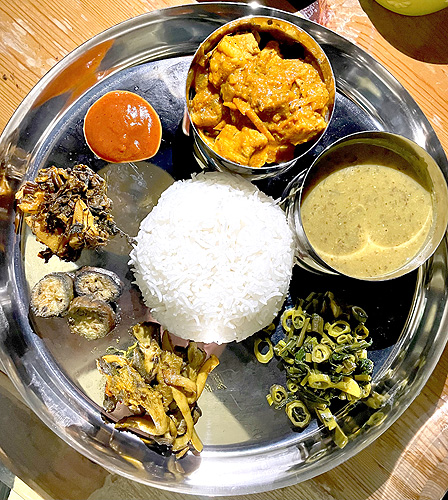 写真上(クリックで拡大)=店で提供している「ダルバート・タルカリ」