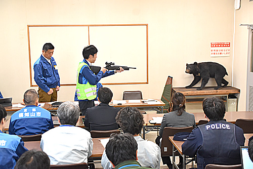 クマの緊急銃猟を府内で初訓練 関係者50人で手順確認