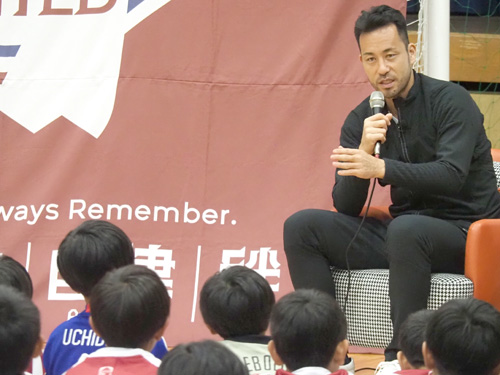 また、報道陣の取材に応じ、福知山の子どもの印象について聞かれると「すごく素直でピュアな印象。プレーの中でもサッカーがうまくなりたいという気持ちがよく伝わってきた」と笑顔を見せ、「長崎の田舎からサッカーを始め、プロになり海外に渡るなんて雲の上の話だと思っていたけど、僕にもできた。子どもたちには地方からでも世界に羽ばたける可能性が誰にでもあるということを伝えられたら」と力を込めた。
