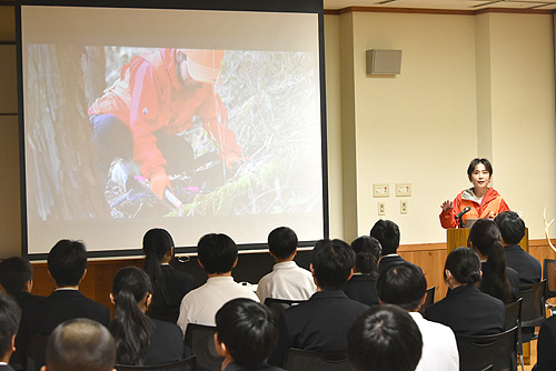 狩猟の意義などを解説 川口中学校で生徒に講演 女性猟師の公庄さん