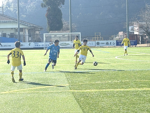 大人になってもサッカーが楽しめる場を残そうと、福知山サッカー協会(片山哲朗会長)は7日、京都府福知山市勅使のエスラボで「第1回福知山シニア選手権大会」を開いた。近年減少傾向にある11人制の社会人サッカーの大会で、福知山、宮津、舞鶴から参加した5チームがトーナメントで戦い、グラウンドを駆けまわって競技を楽しんだ。