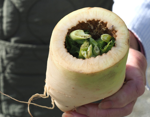 写真(クリックで拡大)=大根の中に葉がぎっしり