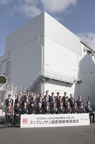 止血の際に働くフィブリノゲンの製剤に産科領域での効能が追加されたことに伴い、市場での需要増に対応したもので、新棟設置で同製剤の生産能力が従来の約3倍に高まった。また、免疫グロブリンやアルブミンの製剤の分注ラインも増設し、安定供給に向けた製造体制を整えた。