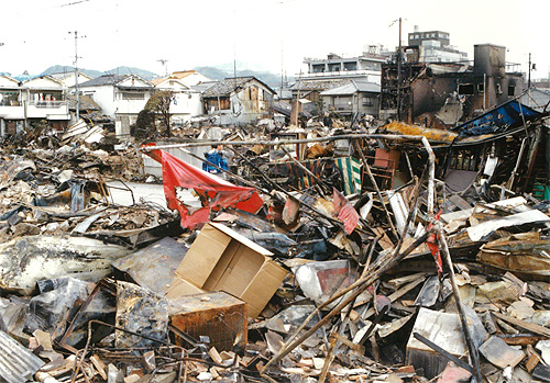 写真下(クリックで拡大)=震災後の神戸市内の様子(1995年1月24日、両丹日日新聞社撮影)