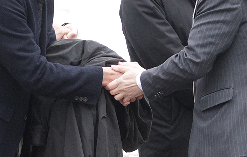 公示日に両氏は舞鶴市内の西舞鶴駅前や選挙事務所前で第一声を上げ、選挙カーに乗り込んで各地を回った。厳しい寒さの中、有権者に政策を訴え、集まった人たちと握手を交わした。