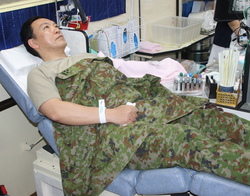 写真(クリックで拡大)=献血に協力を(7日に自衛隊福知山駐屯地で)