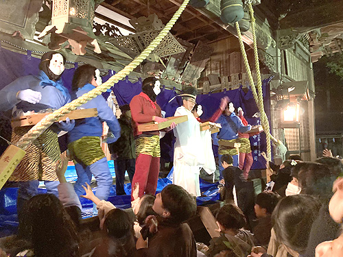 鬼たちも負けじと金棒を振り上げて威嚇するが、参拝者たちはひるむことなく徐々に鬼たちを本殿へと追い詰めた。