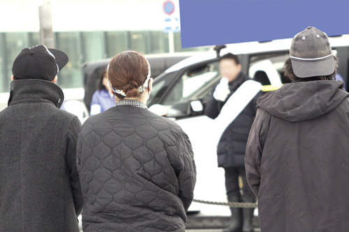 写真(クリックで拡大)=福知山市内で候補者の訴えに耳を傾ける有権者たち(画像の一部を加工しています)