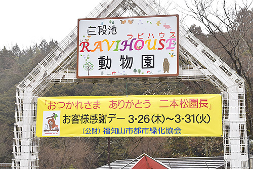同協会による管理運営は3月末で終了し、長年園を支えてきた二本松俊邦園長も退任する。入園無料は名物園長として親しまれてきた二本松園長と来園者が最後に触れ合える機会にもなればとの思いも込めた。園の入り口付近には「おつかれさま ありがとう 二本松園長」などと記した横断幕を掲示した。