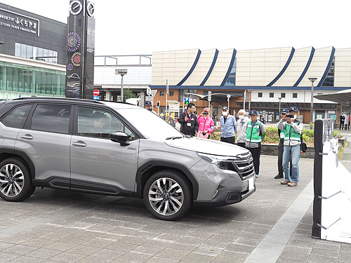 初めに、近くの市民交流プラザで同社社員による先進安全技術の講演があった。その後、参加者が実際に車両に乗り込み、前方の障害物に接近すると自動で停止するブレーキ作動を体験した。