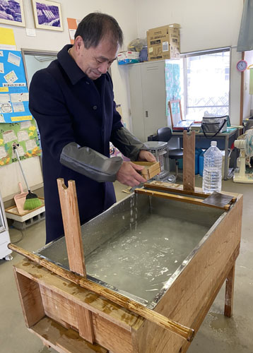 大江支所は「子どもからお年寄りまでの誰でも簡単に漉くことができるので、ぜひ気軽に立ち寄り体験してほしい」と呼びかけている。