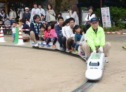 鉄道模型電動車は、正明寺の元JR社員、伊藤成光さん(73)が製作したもので、北陸新幹線、特急電車こうのとり、SL、京都丹後鉄道のくろまつなどが、来場者を乗せて各会場の特設コースを一巡する。