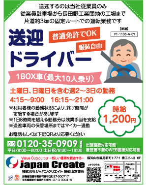 送迎ドライバー / (株)ジャパンクリエイト 福知山営業所 1月7日更新