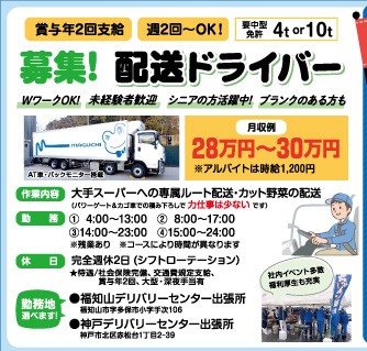 | 勤務地 | 福知山デリバリーセンター出張所 (福知山市字多保市小字手次106) 神戸デリバリーセンター出張所 (神戸市北区赤松台1丁目2-39) |
