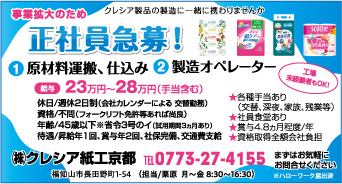 事業拡大のため 正社員急募 / (株)クレシア紙工京都 3月4日更新
