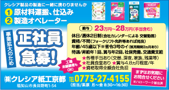 事業拡大のため 正社員急募 / (株)クレシア紙工京都 3月14日更新