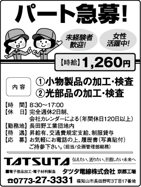 このホームページに使用している記事、写真、図版はすべて株式会社両丹日日新聞社、もしくは情報提供者が著作権を有しています。全部または一部を原文もしくは加工して利用される場合は、商用、非商用の別、また媒体を問わず、必ず事前に両丹日日新聞社へご連絡下さい。