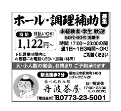 このホームページに使用している記事、写真、図版はすべて株式会社両丹日日新聞社、もしくは情報提供者が著作権を有しています。全部または一部を原文もしくは加工して利用される場合は、商用、非商用の別、また媒体を問わず、必ず事前に両丹日日新聞社へご連絡下さい。