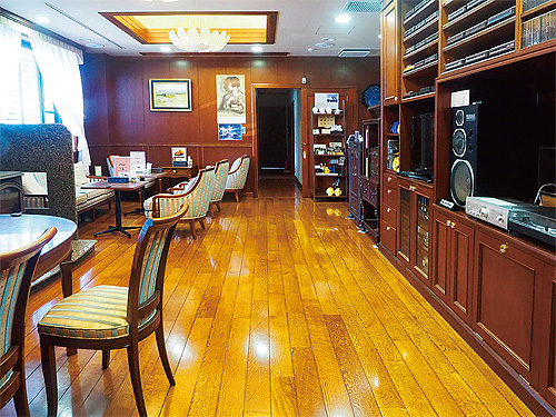 1階のカフェは重厚な家具や珍しい蓄音機が置かれたクラシカルな雰囲気